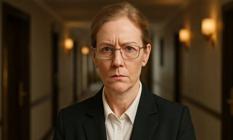 Sie trug einen schiefergrauen Blazer, der zu ihrem trüben Blick passte. Ihr Gesicht verriet nichts – wie eine Steinstatue, die zu viel gesehen hatte, um noch von irgendetwas bewegt zu werden.
