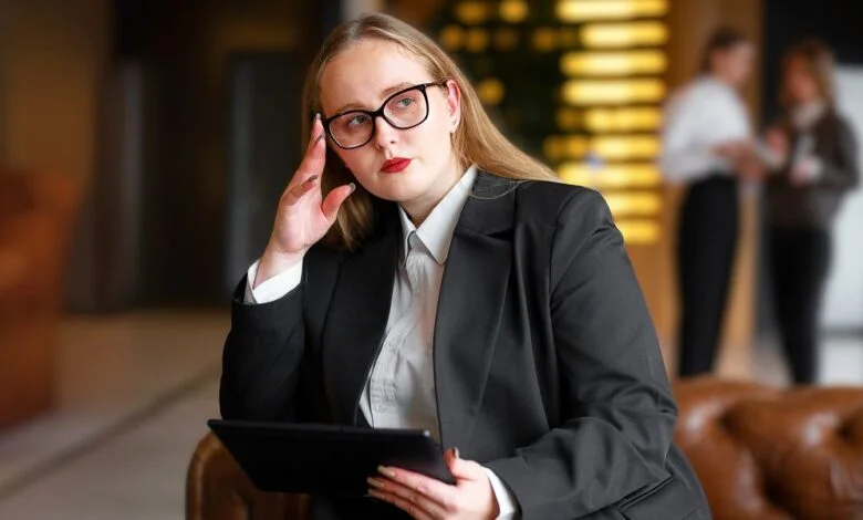 Ein stirnrunzelnder Hotelmanager in einem marineblauen Anzug | Quelle: Midjourney