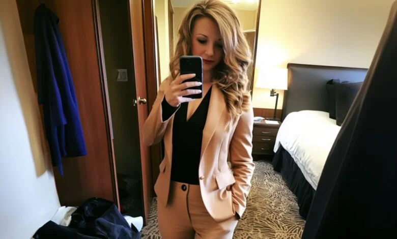 Eine junge Frau macht ein Selfie in einem Hotelzimmer | Quelle: Midjourney