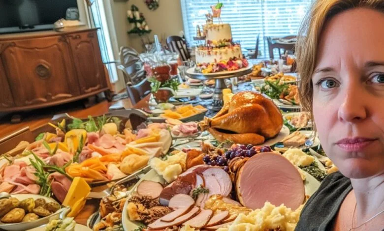 Am großen Tag habe ich den Truthahn gebraten, Beilagen zubereitet und sogar zwei Kuchen gebacken.