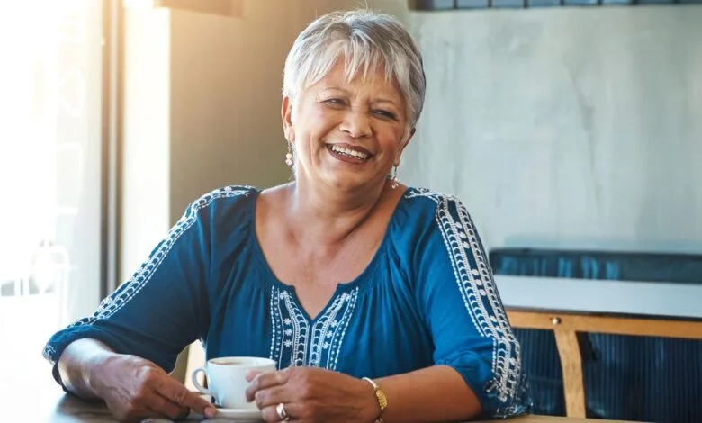 Eine elegante ältere Frau mit einer Tasse Kaffee | Quelle: Pexels