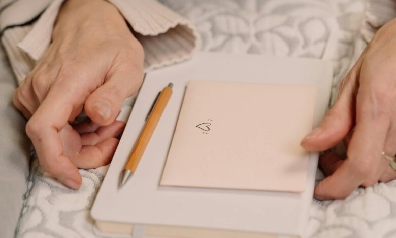 Nahaufnahme einer Frau, die ein Tagebuch und einen Umschlag hält | Quelle: Pexels