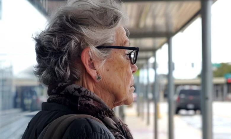Eine ältere Frau steht an einer Straße | Quelle: Midjourney