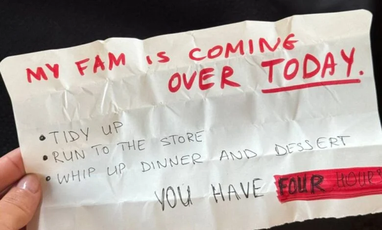 Mein Mann hat mir kurzfristig gesagt, dass seine Familie zu Besuch kommt, und erwartet von mir, dass ich koche, putze und lächle.