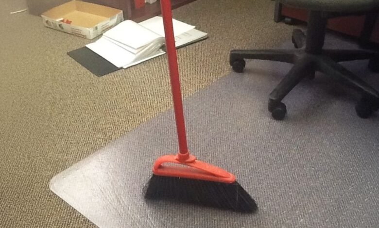 Als unser Staubsauger kaputt ging, meinte mein Mann, ich solle einfach kehren, weil ich „sowieso den ganzen Tag zu Hause bin“. Also schnappte ich mir unser Neugeborenes und einen kaputten Besen und tauchte in seinem Büro auf, um ihm zu zeigen, wie das in Wirklichkeit aussieht.