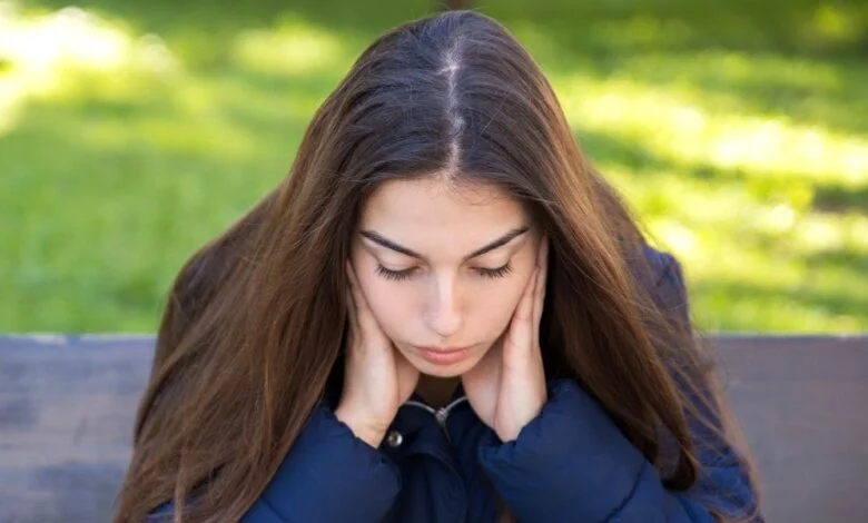 Ein Teenager-Mädchen mit gesenktem Kopf | Quelle: Midjourney