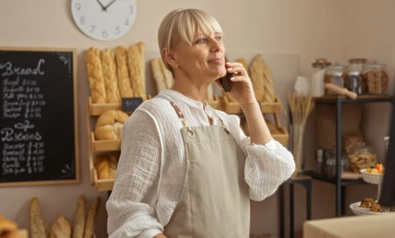 Eine traurige Frau mittleren Alters steht in einer Bäckerei | Quelle: Midjourney