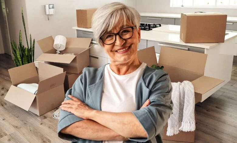Ältere Frau in einem Zimmer voller Kisten | Quelle: Midjourney