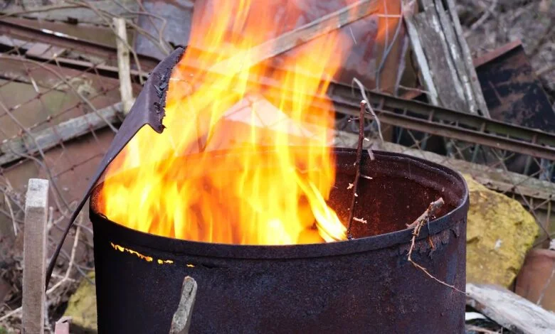 Ein Lagerfeuer in einem Metallbehälter im Hinterhof | Quelle: Midjourney