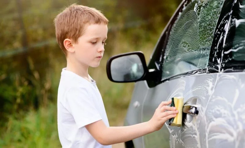 Liam sah so süß aus, als er nach draußen marschierte und einen winzigen Schwamm wie ein Schwert umklammerte. In den ersten 30 Minuten waren wir ein gutes Team. Er schrubbte die Felgen mit der Konzentration eines kleinen Soldaten, und ich kümmerte mich um die Vordersitze und zog alte Quittungen und klebrige Bonbonpapierchen heraus.